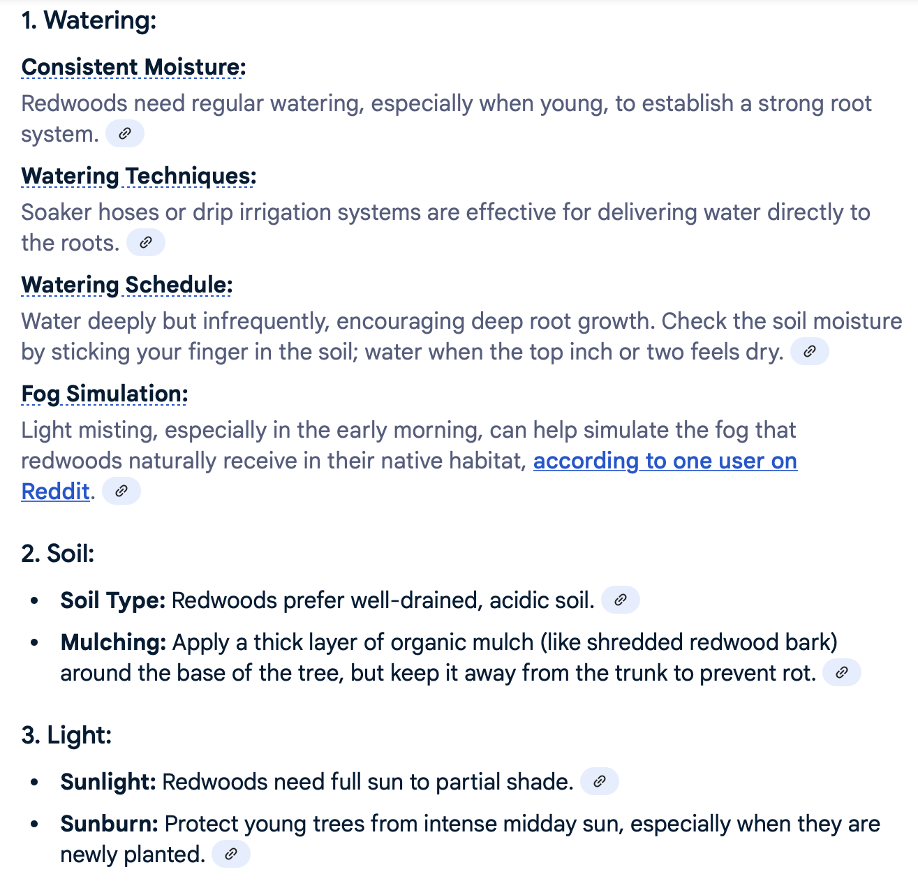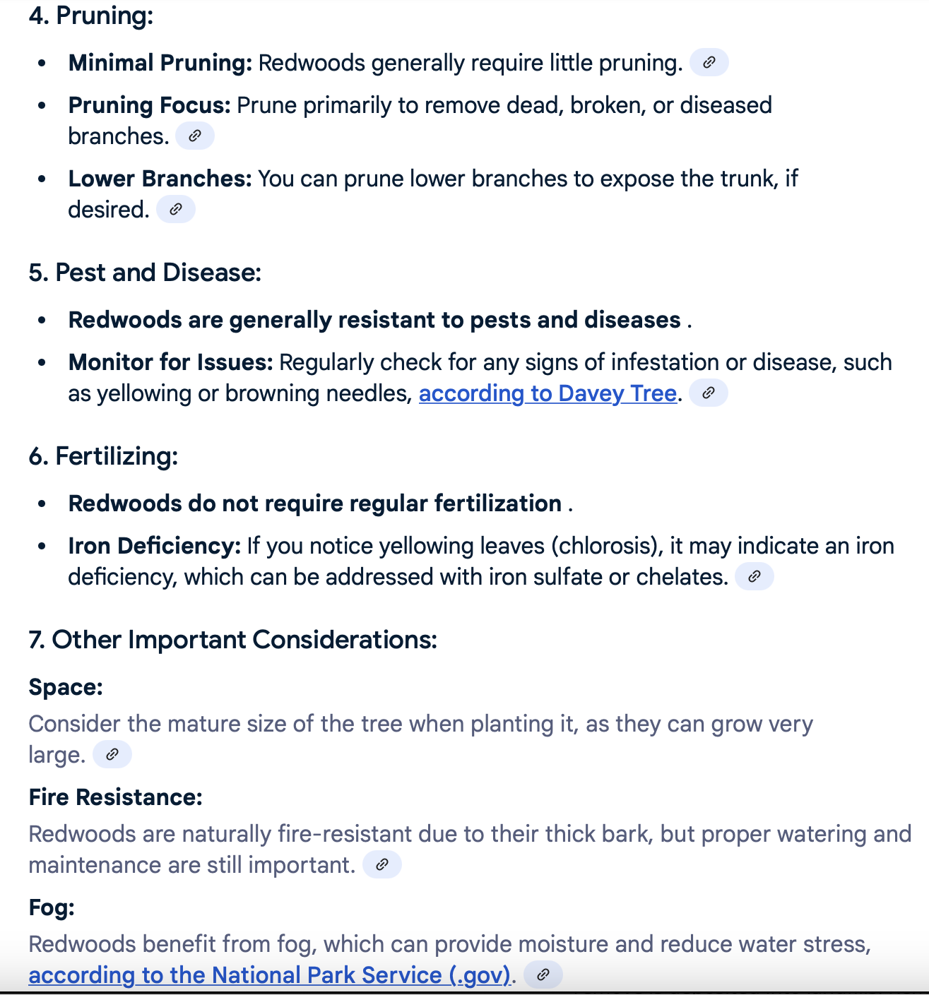 The following is a detailed list of Coastal Redwood tree care: